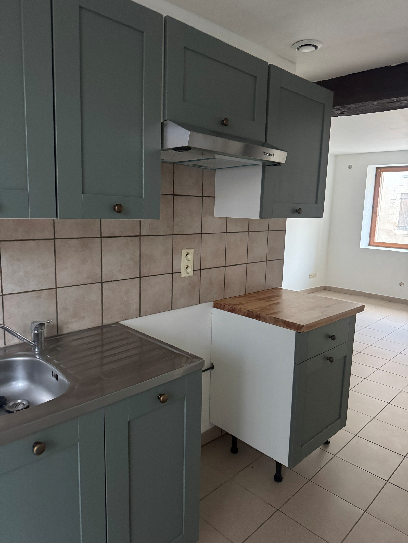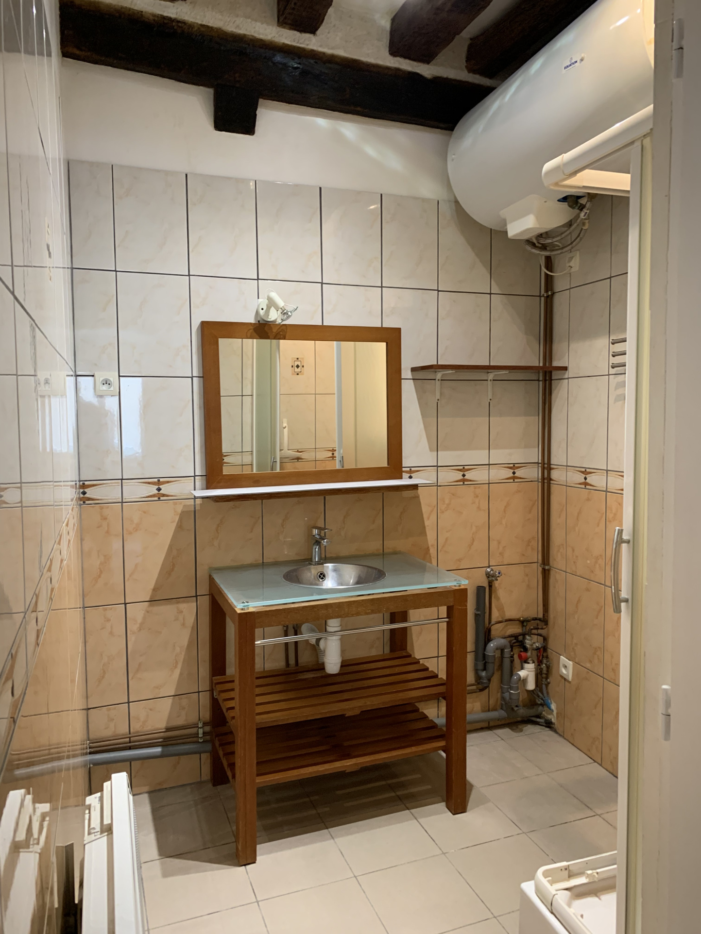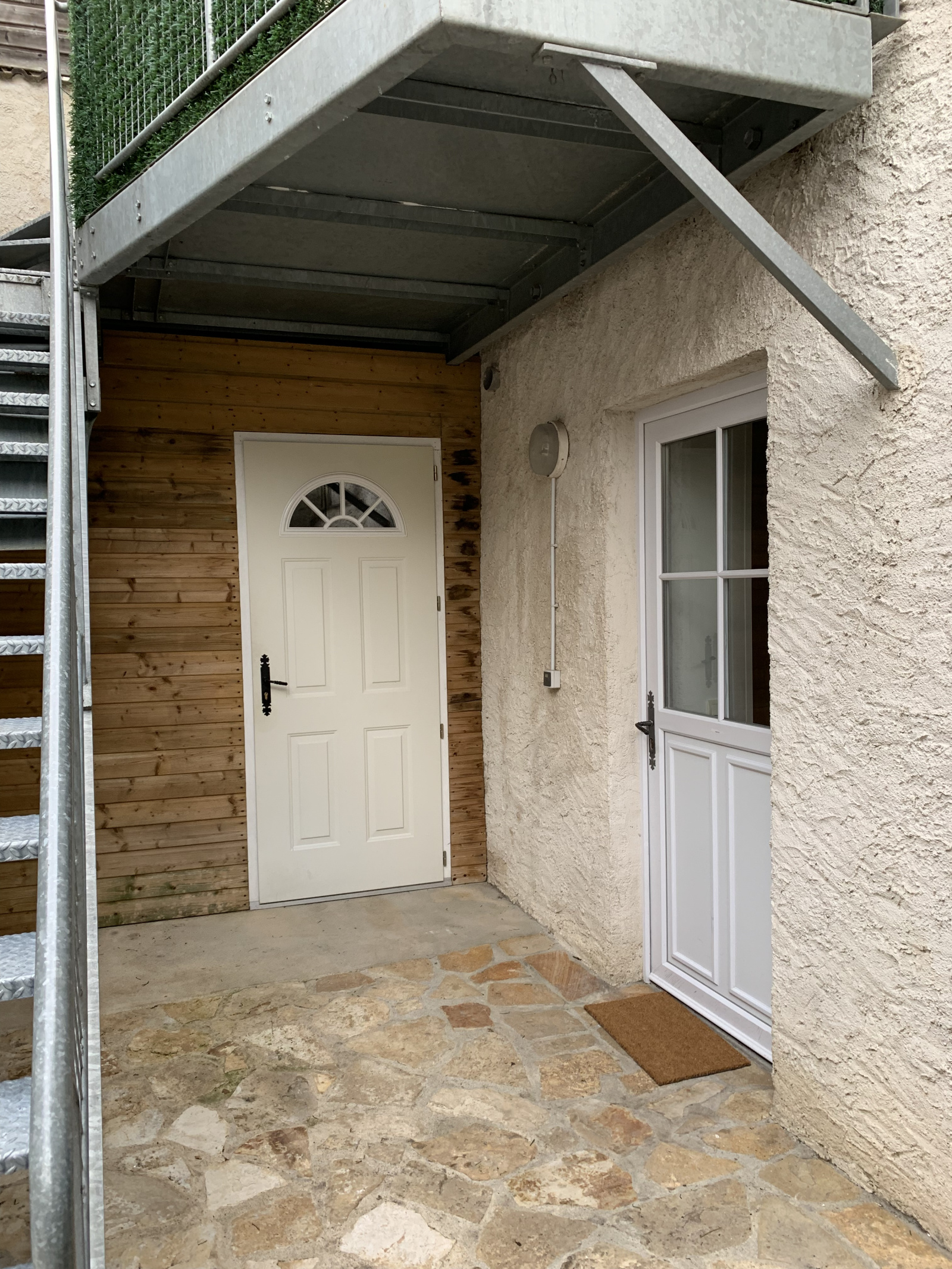 Rue Tudelle, petit F3 comprenant : entrée dans cuisine ouverte aménagée et semi-équipée, séjour, deux chambres, salle d'eau avec WC. Cellier extérieur privatif. Chauffage individuel électrique. Contrat eau à prévoir en plus. Libre de suite.