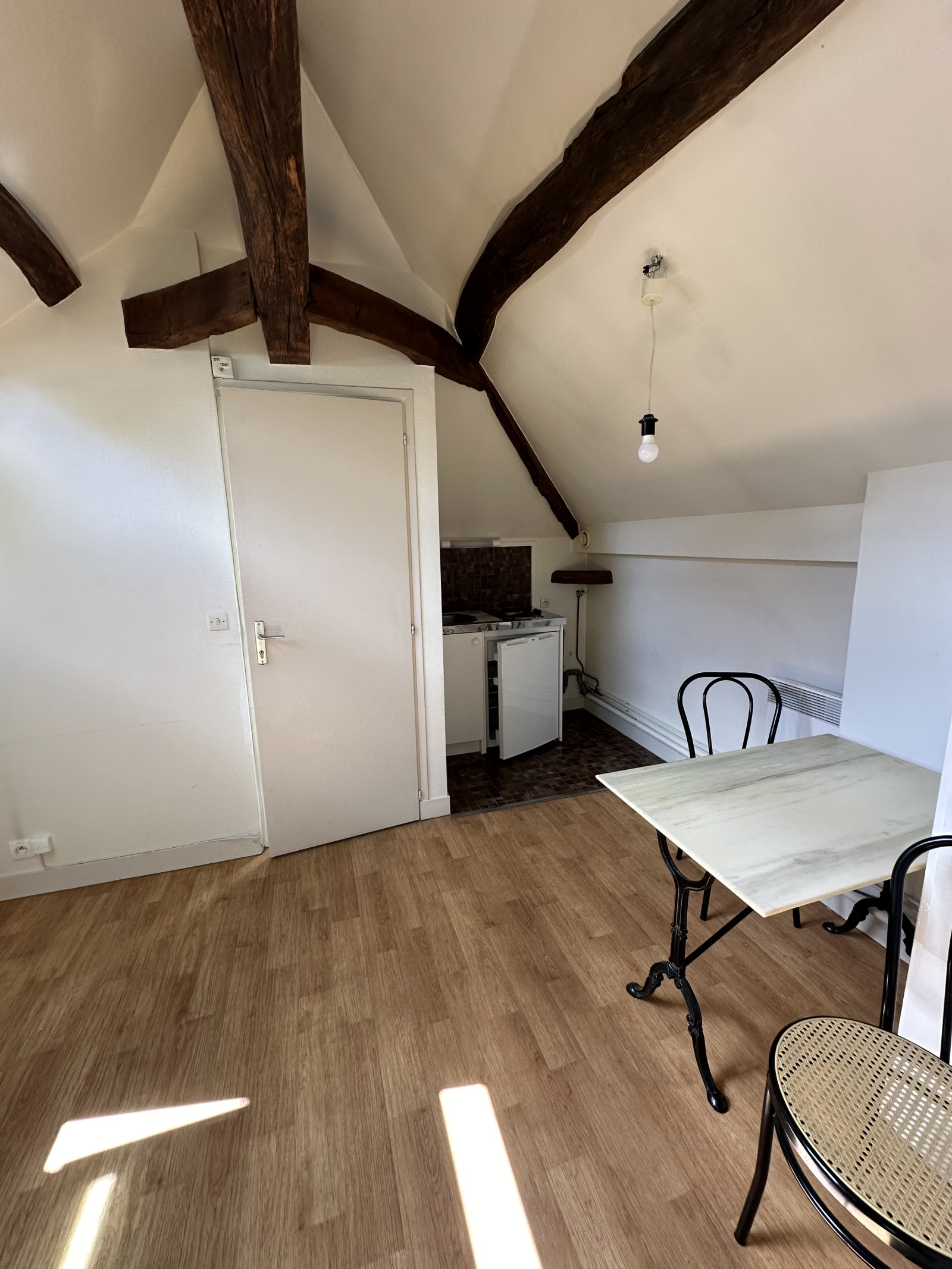 Dans Petit Immeuble, Studio de caractère de 17,54m² (24,86m² au sol) comprenant : Entrée, coin cuisine équipée , piéce principale, salle de bains, WC.