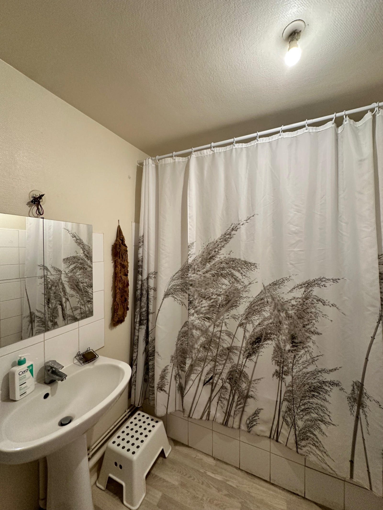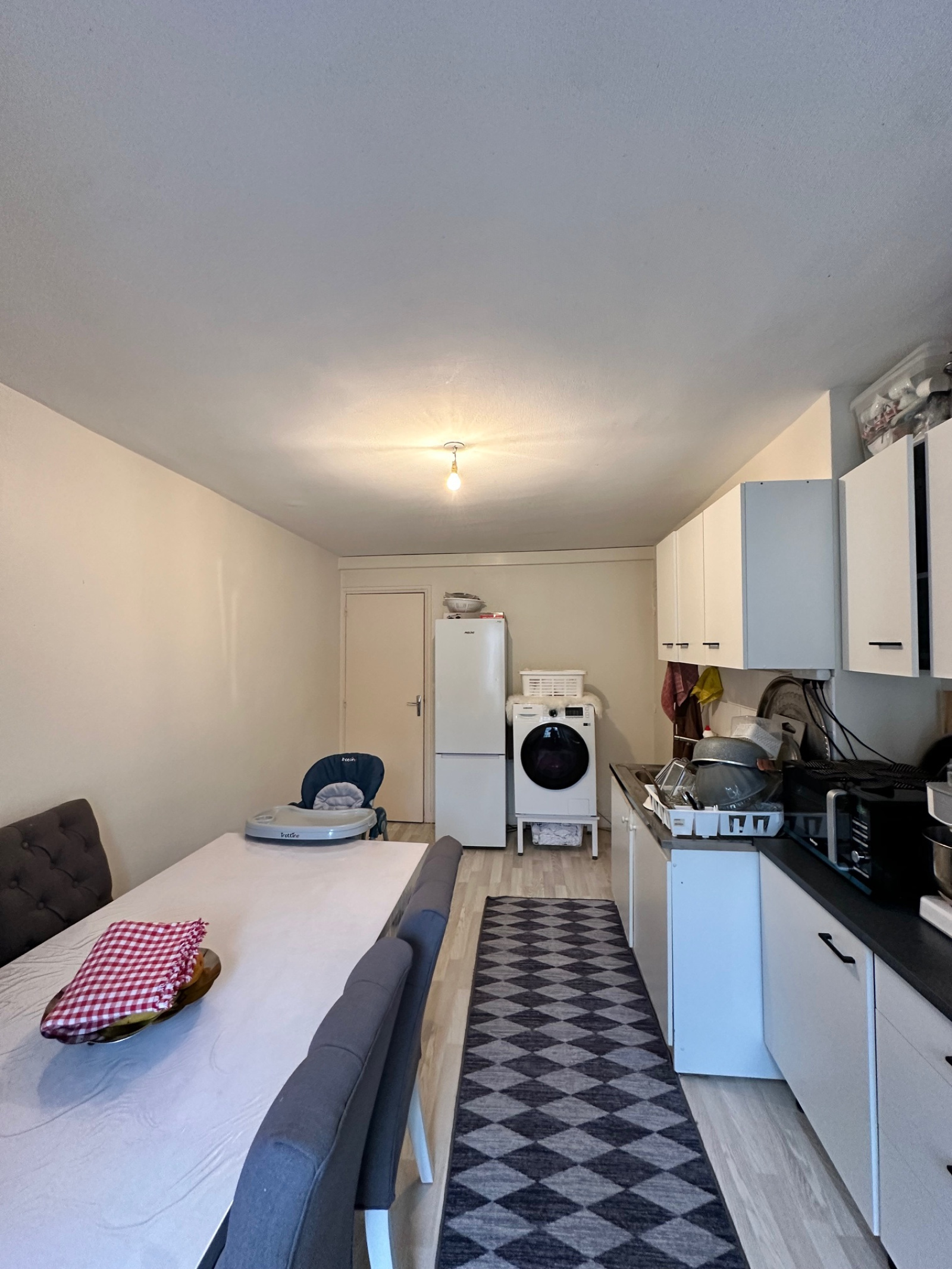 Entrée sur grand séjour, cuisine , salle de bains, wc, 2 chambres