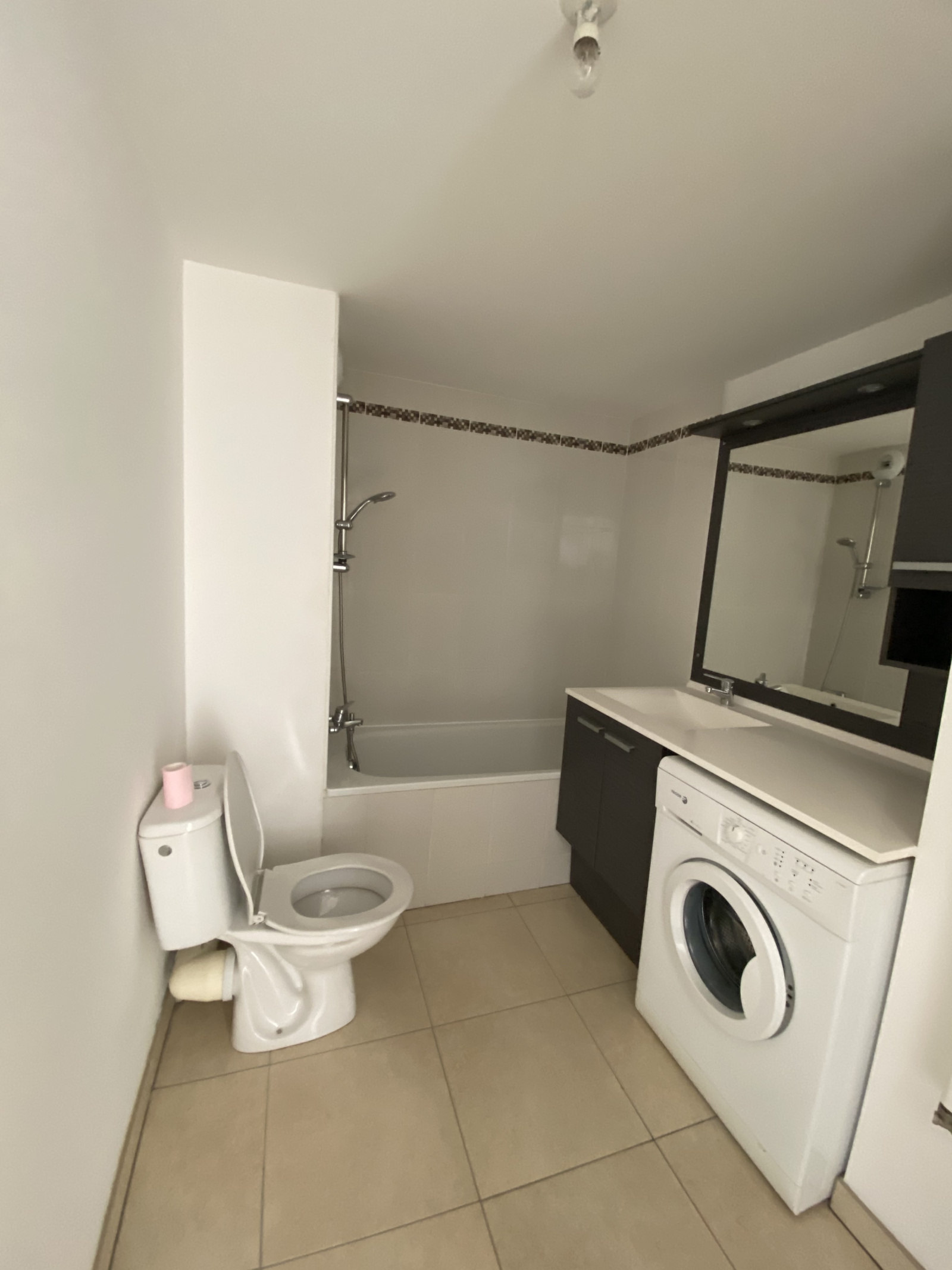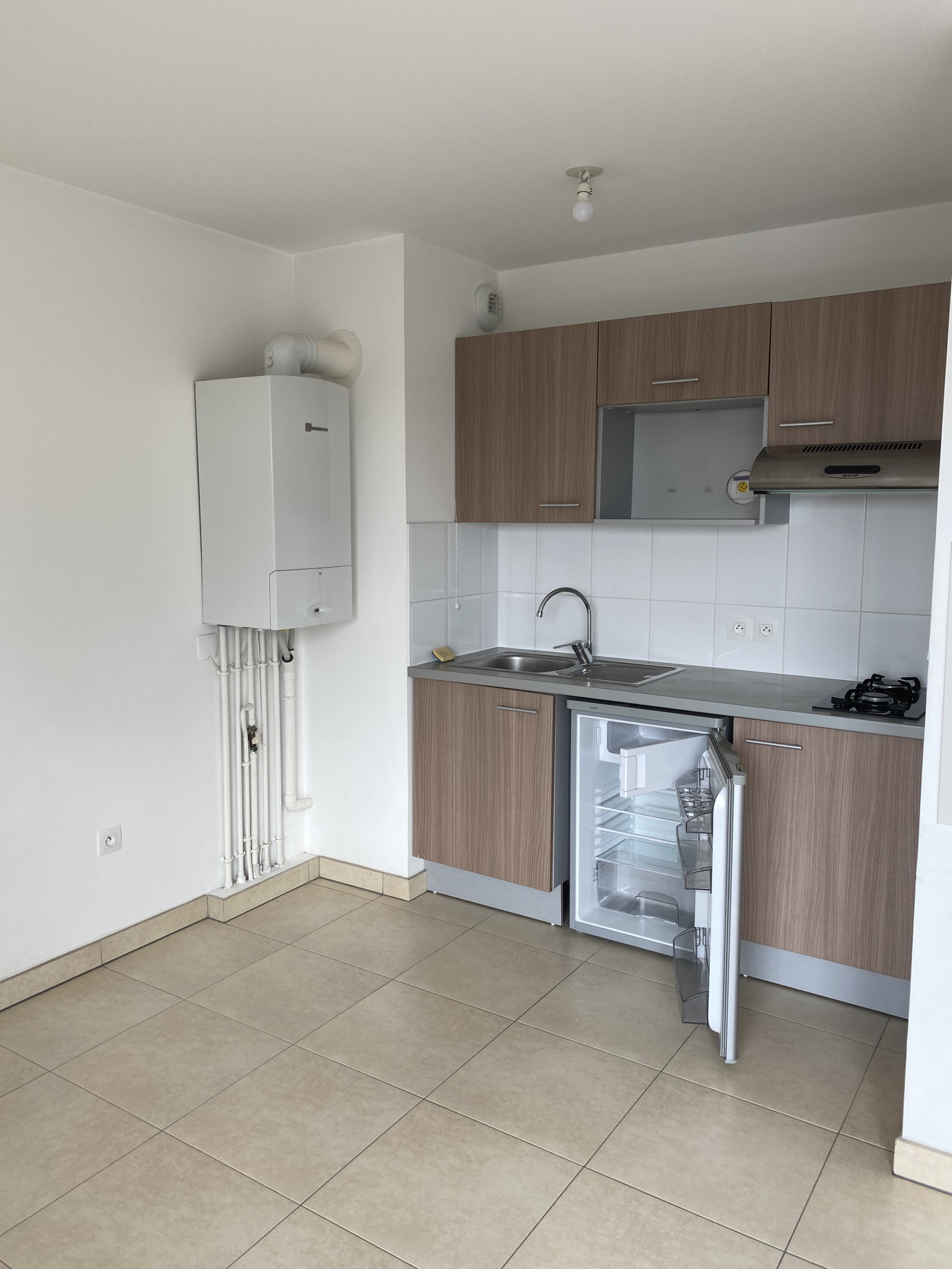 Il se décompose comme suit : Entrée avec placard, séjour donnant sur la terrasse , cuisine ouverte aménagée et équipée ( hotte, plaques , frigo) , chambre avec placard , salle de bains wc avec lave linge .